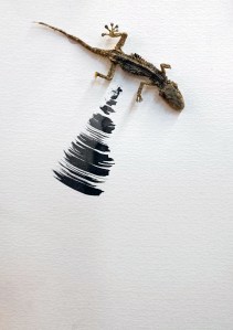 Entre la distancia y el olvido, 2019_2021. collage de elementos encontrados en el boque y tinta china sobre papel 14,8x21cm c:u X