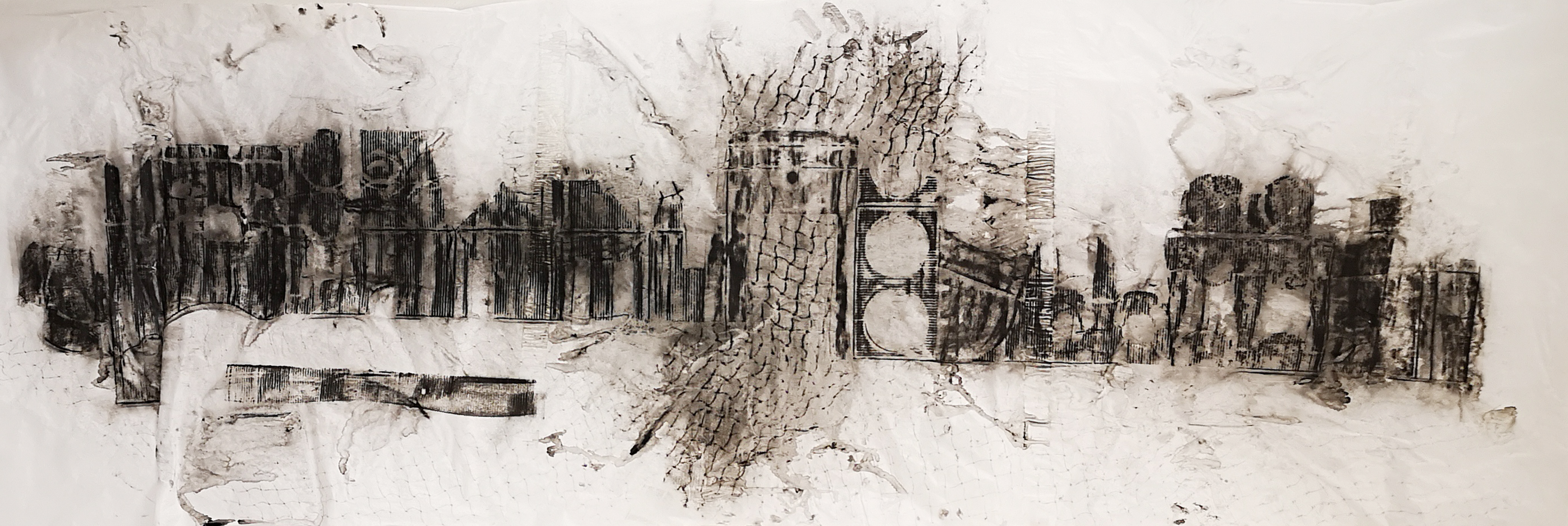INSTANTE, 2018/2020. mixta sobre papel sulfurizado. 70x210cm